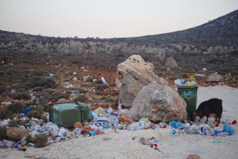 Αυτοκίνητα και σκουπίδια -πολλά σκουπίδια- ανάμεσα στα ζώα που έβοσκαν κάποτε ανενόχλητα στην περιοχή.