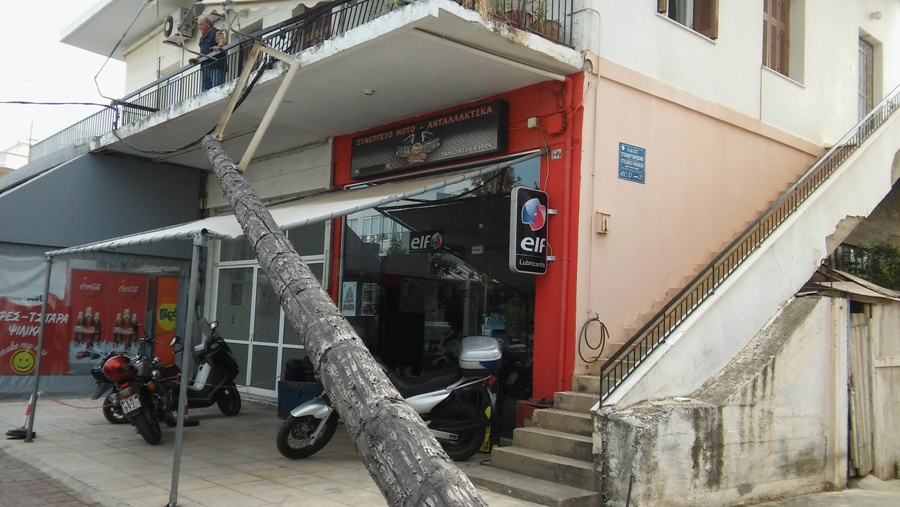 Ξεπατώθηκε στύλος της ΔΕΗ και έπεσε στο μπαλκόνι σπιτιού στο κέντρο των Χανίων | Photos