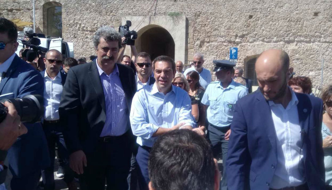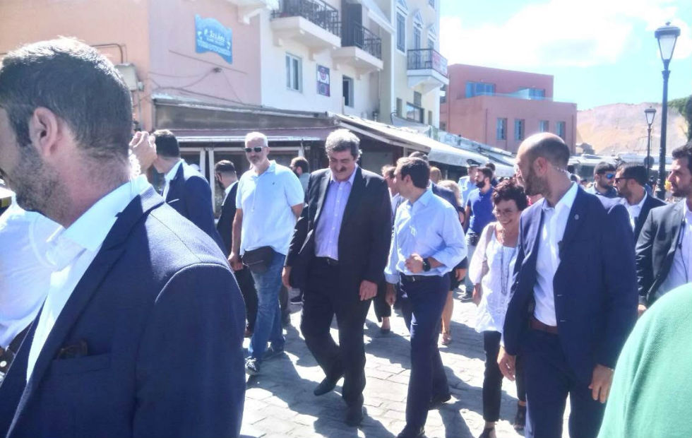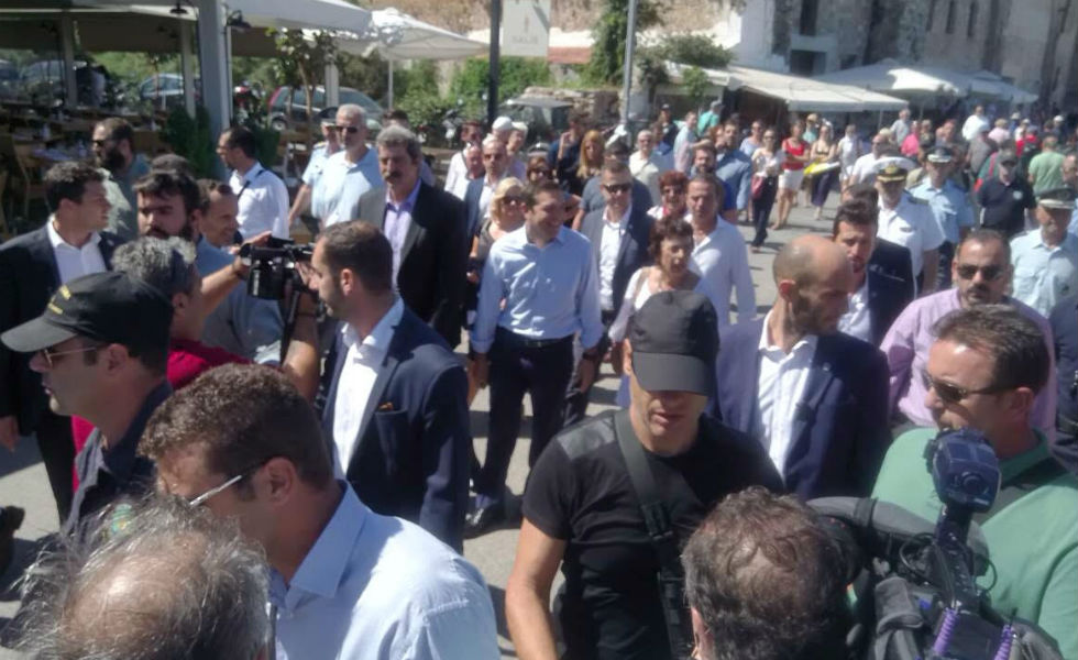 Μετά την σύντομη ομιλία του, ο κ. Τσίπρας, συνοδεία βουλευτών του νομού, περπάτησε από το ΚΑΜ μέχρι το Νεώριο Μόρο.