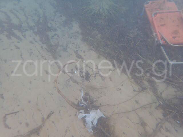 Οι υποβρύχιες φωτογραφίες είναι από τους Αγίους Αποστόλους, εκεί που απ’ ότι φαίνεται η δυνατή κακοκαιρία στα τέλη του Οκτώβρη έπιασε στον ύπνο τους επιχειρηματίες που πιθανόν δεν πρόλαβαν να αποθηκεύσουν ξαπλώστρες και ομπρέλες, με αποτέλεσμα να βρεθούν στη θάλασσα..
