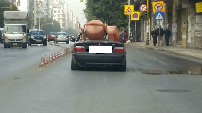 Να όμως που το είδαμε και αυτό… Ο οδηγός της εικονιζόμενης BMW εθεάθη στο κέντρο της Θεσσαλονίκης να μεταφέρει όντως μία μπετονιέρα, κάτι που φυσικά δεν πέρασε απαρατήρητο από τους διερχόμενους που απαθανάτισαν τη σκηνή!