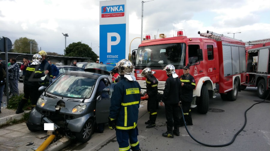 Στο σημείο έσπευσαν άμεσα οχήματα της Πυροσβεστικής Υπηρεσίας για τον απεγκλωβισμό ατόμου από το όχημα.