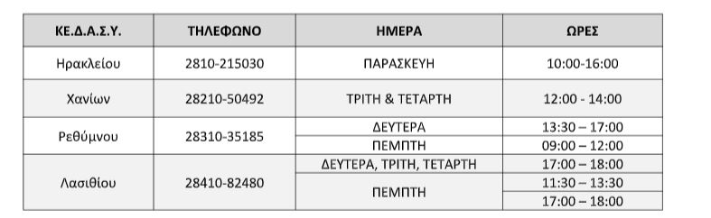 Παρασκευή 29 Μαΐου 2026 για τα Γενικά Λύκεια (ΓΕ.Λ.) και το Σάββατο 30 Μαΐου 2026 για τα Επαγγελματικά Λύκεια (ΕΠΑ.Λ.), η Περιφερειακή Διεύθυνση Εκπαίδευσης Κρήτης, σε συνεργασία με τα ΚΕ.Δ.Α.Σ.Υ. Κρήτης, ανακοινώνει τη λειτουργία τηλεφωνικών γραμμών ψυχολογικής υποστήριξης για το έτος 2026.