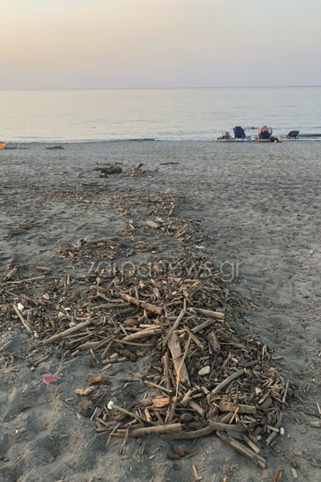 Μέχρι και σήμερα, αρχές Αυγούστου, ξύλα, καλάμια, ακόμα και σκουπίδια εκτείνονται σε όλο το μήκος της, όπως φαίνεται ξεκάθαρα και στις φωτογραφίες που δημοσιεύει το zarpanews.gr.