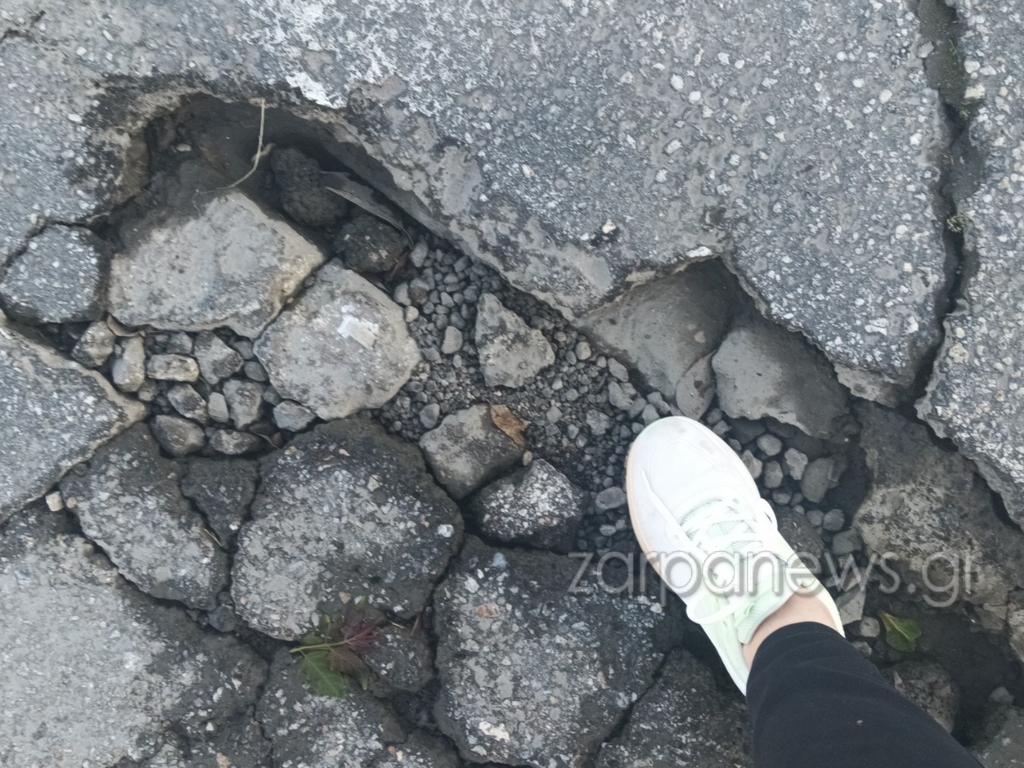 Όπως φαίνεται σε πολύσυχναστο δρόμο της περιοχής που είναι κάθετος στην παλιά εθνική οδό Χανίων – Κισσάμου, μια λακκούβα βρίσκεται μάλιστα πάνω σε διάβαση πεζών! Ο κίνδυνος ατυχήματος τόσο για τους περαστικούς όσο για τους οδηγούς κυρίως δίκυκλων οχημάτων είναι ορατός.