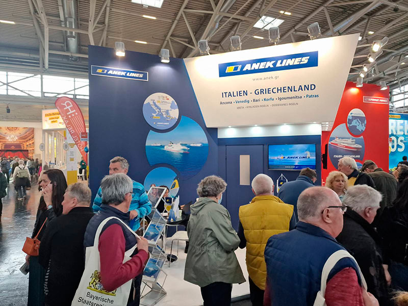 Η ANEK LINES, πιστή στη δέσμευσή της να αναδεικνύει διεθνώς την ελληνική φιλοξενία αλλά και την ποιότητα του εθνικού τουριστικού μας προϊόντος, συμμετείχε με μεγάλη επιτυχία στις διεθνείς εκθέσεις τουρισμού CMT, στη Στουτγάρδη της Γερμανίας (14-22/01/23), F.RE.E. στο Μόναχο της Γερμανίας (22-26/02/23) και ITB στο Βερολίνο της Γερμανίας (07-9/03/23).