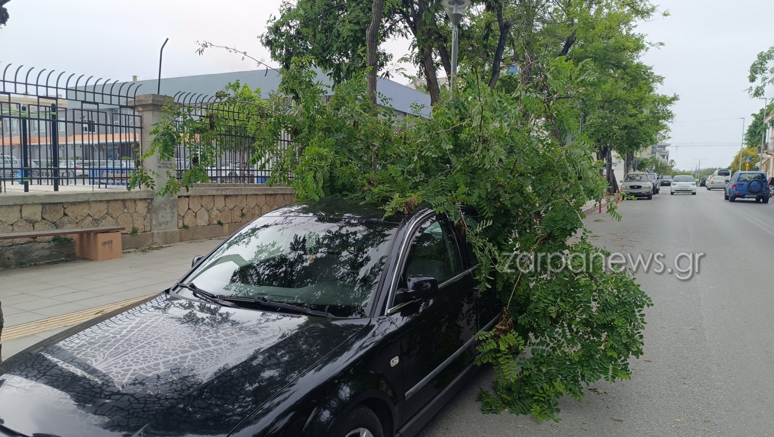 Μεγάλο κλαδί από δέντρο στο κέντρο της πόλης, αποκολλήθηκε λόγω των ισχυρών ανέμων και έπεσε πάνω σε σταθμευμένο αυτοκίνητο στην οδό Ελευθερίου Βενιζέλου, στο ύψος της εισόδου του Εθνικού Σταδίου.