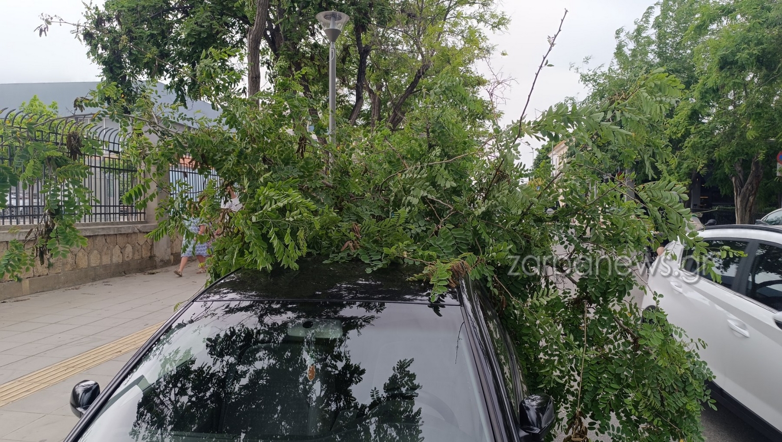 Ωστόσο, όπως φαίνεται στις φωτογραφίες του zarpanews.gr, το κλαδί αν και μεγάλο, δεν φαίνεται να έχει προκαλέσει ζημιές στο αυτοκίνητο: