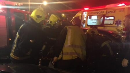 Άμεσα κλήθηκε η πυροσβεστική υπηρεσία η οποία έσπευσε στο σημείο με 2 οχήματα και 4 πυροσβέστες για να απεγκλωβίσουν τον οδηγό του αυτοκινήτου ο οποίος είχε τις αισθήσεις του αλλά ήταν τραυματισμένος.
