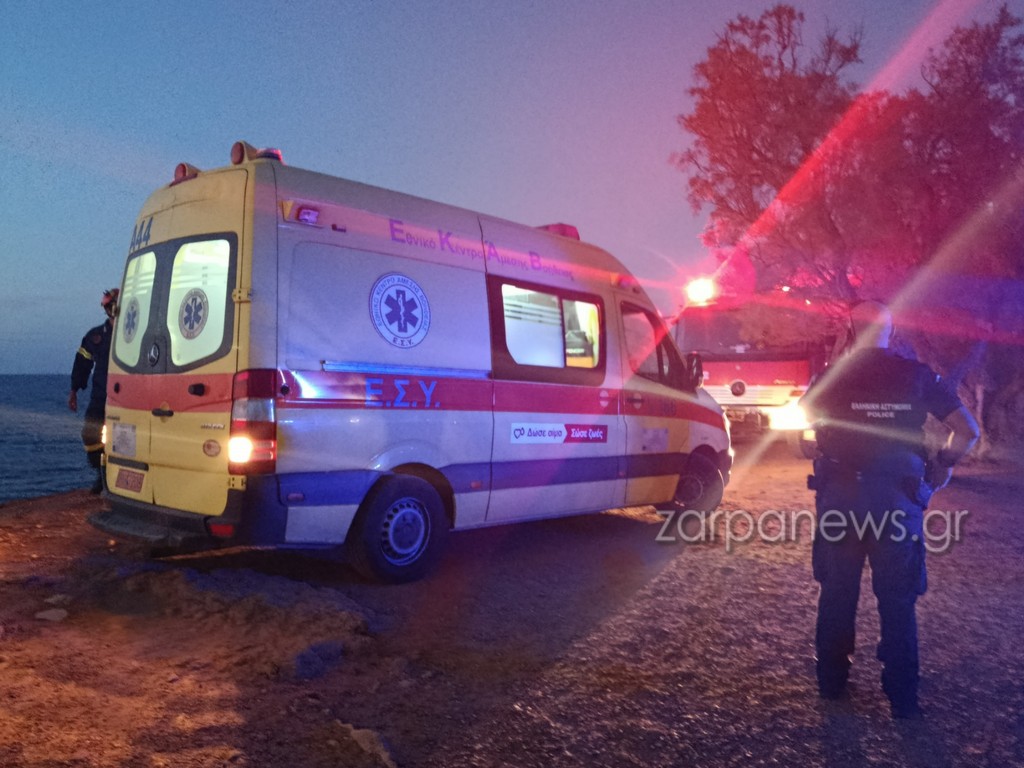 Στο σημείο έφτασε και ασθενοφόρο του ΕΚΑΒ για να παράσχει τις πρώτες βοήθειες και να τον μεταφέρει στο Γενικό Νοσοκομείο Χανίων