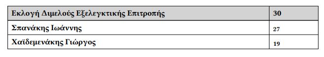 – Για την Εξελεγκτική Επιτροπή εξελέγησαν οι κ.κ. Σπανάκης Ιωάννης και Χαιδεμενάκης Γιώργος