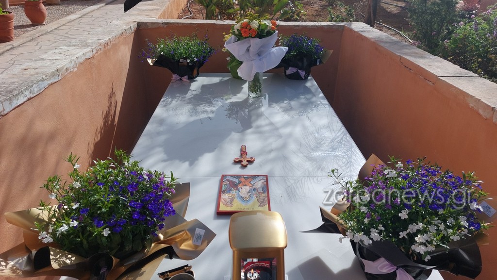 Κάποιοι από τους πιστούς, φανερά συγκινημένοι, εναπόθεσαν λουλούδια στον τάφο του μακαριστού Μητροπολίτη, που έχει ταφεί στον προαύλιο χώρο της μονής.