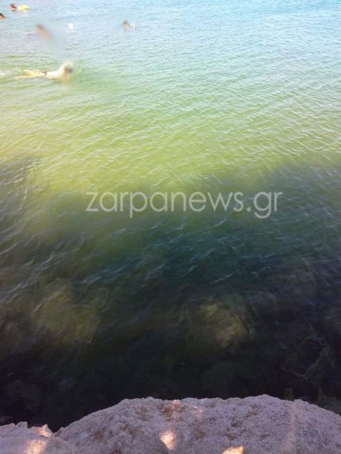 Ανησυχία από κατοίκους και επισκέπτες στην παραλία στο Μαράθι Χανίων, αφού την Δευτέρα το απόγευμα τα νερά μυστηριωδώς έγιναν πράσινα σε ένα σημείο της παραλίας.