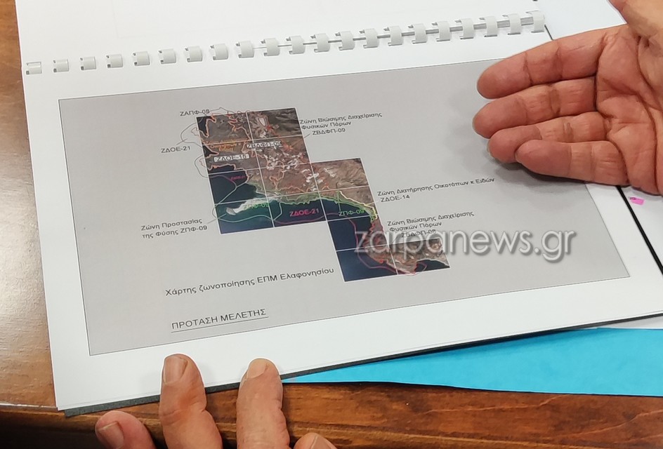 Ο εισηγητής, Κώστας Κουκουράκης, εξήγησε ότι η δημοτική αρχή ζητάει να οριστεί το Ελαφονήσι και κοντινές περιοχές ως ζώνη προστασίας της φύσης, όπου επιτρέπονται κάποιες δραστηριότητες.