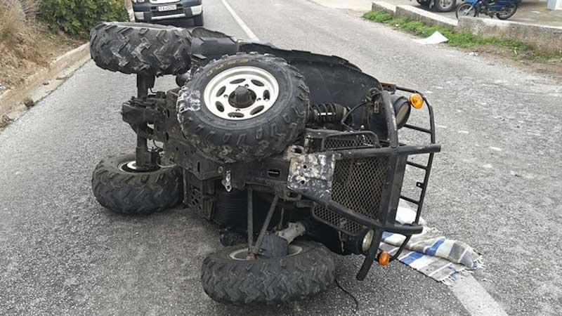 Οι επιβαίνοντες στο τετράτροχο όχημα φέρουν ορθοπεδικά τραύματα. Στο σημείο έσπευσε ασθενοφόρο για να τους μεταφέρει στο Νοσοκομείο Χανίων.