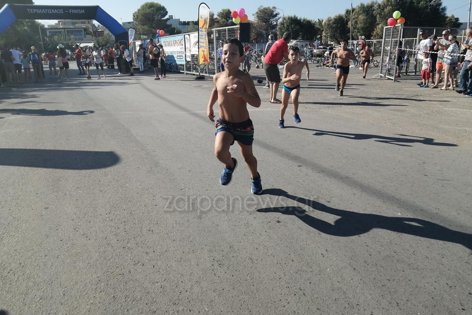 Η αθλητική διοργάνωση ξεκίνησε το πρωί με το Υπερκοπελάκι, όπου δεκάδες μικροί πρωταθλητές κολύμπησαν στη θάλασσα, έτρεξαν και έκαναν ποδήλατο γύρω από το άλσος όπου και τερμάτισαν: