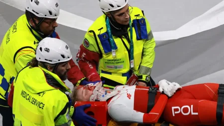 Η Πολωνή αθλήτρια του πατινάζ γέμισε αίματα στο πρόσωπο και κινδύνευσε να χάσει το μάτι, αλλά αφού μεταφέρθηκε στο νοσοκομείο, έγινε γνωστό ότι είναι καλά στην υγεία της και χρειάστηκε μόνο κάποια ράμματα, γλιτώνοντας από έναν πολύ σοβαρότερο τραυματισμό.