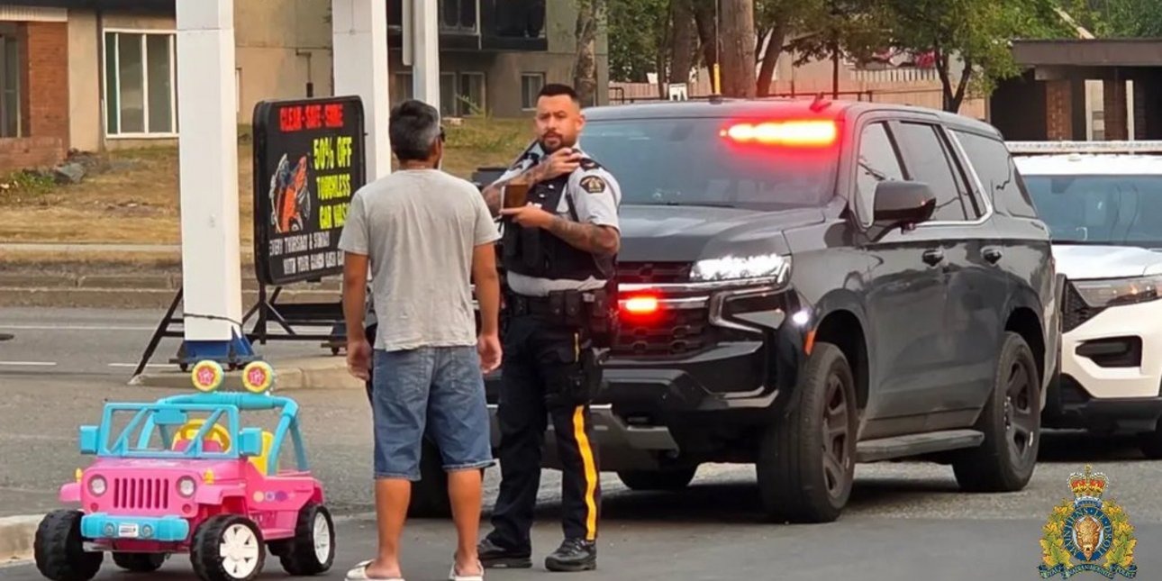 Αντιμέτωποι με ένα περίεργο θέαμα βρέθηκαν οι αστυνομικοί στο Πρινς Τζορτζ της Βρετανικής Κολομβίας, όταν είδαν έναν άνδρα να οδηγεί ένα μικρό ροζ τζιπ Barbie σε κεντρικό δρόμο και μάλιστα σε ώρα αιχμής.