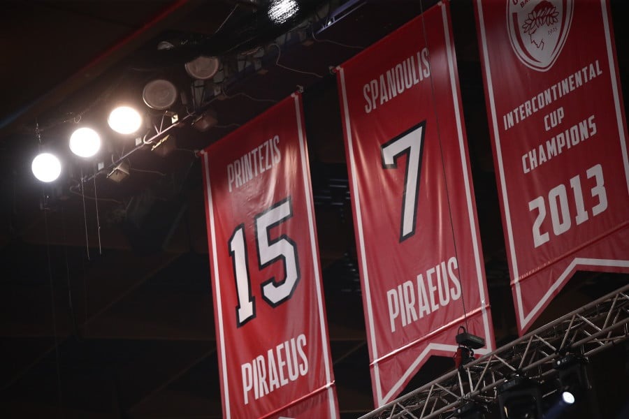 Το Νο15 τοποθετήθηκε δίπλα στο Νο7 του Βασίλη Σπανούλη και κανείς παίκτης του Ολυμπιακού δεν θα μπορεί να επιλέξει πλέον αυτό το νούμερο.