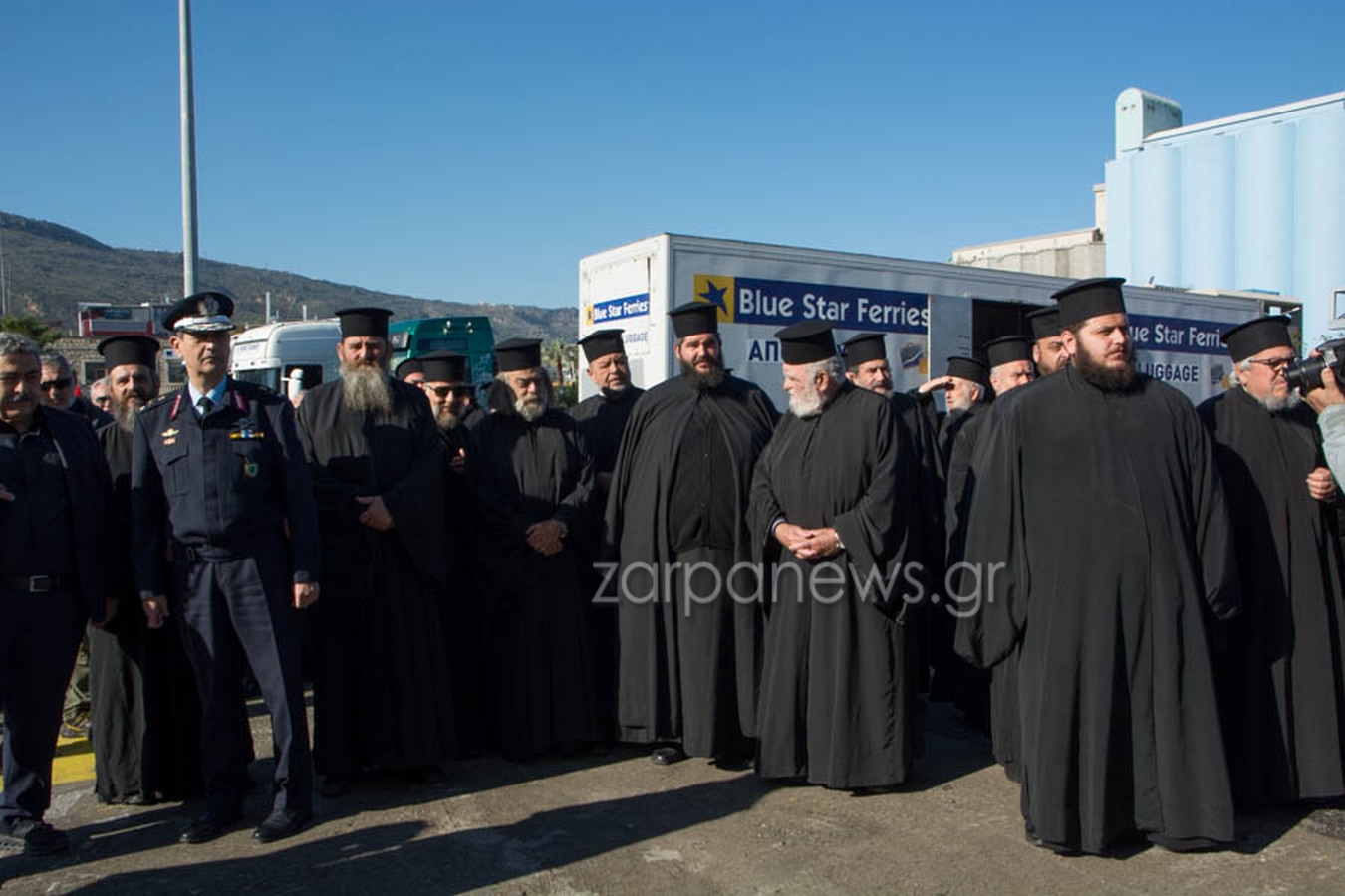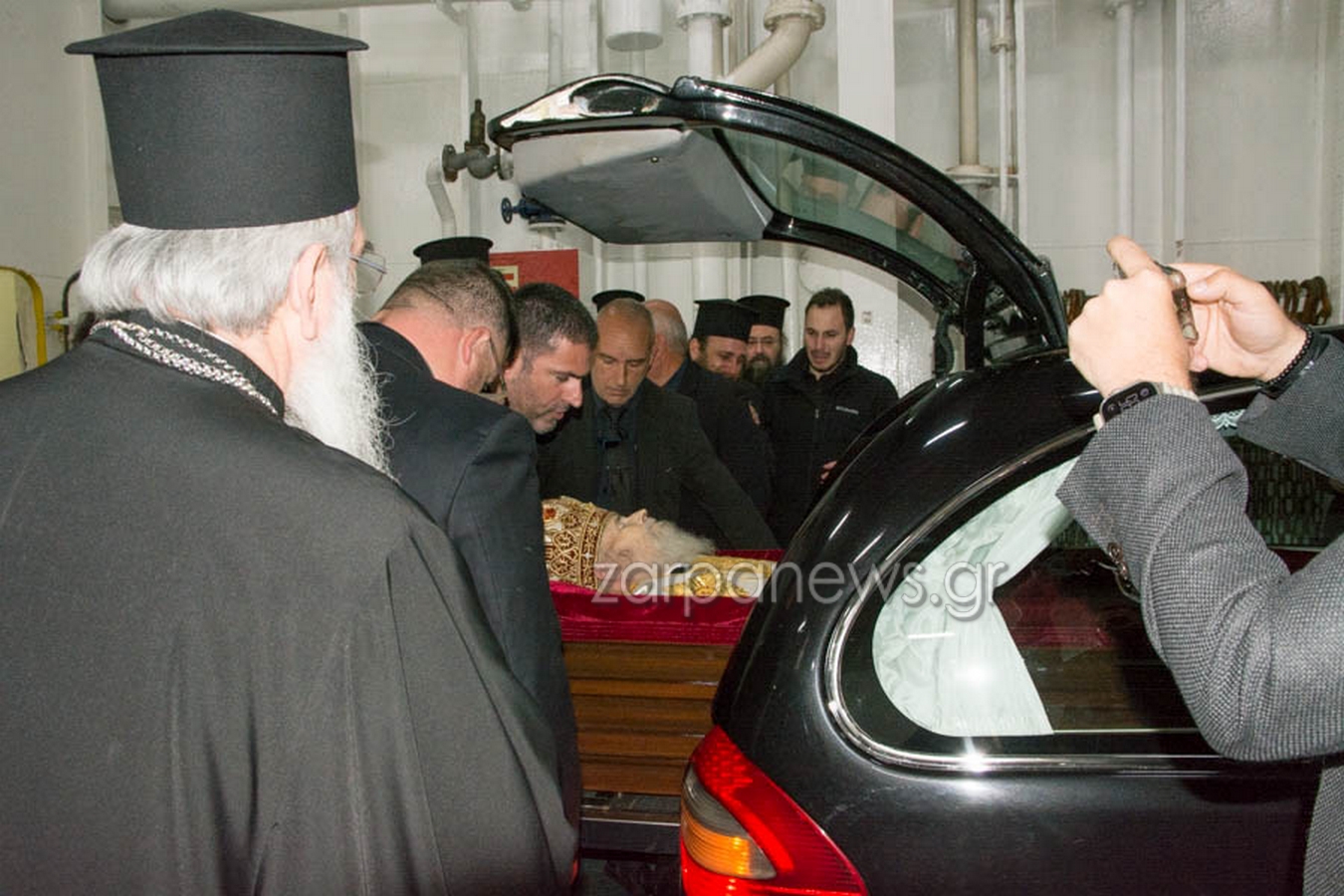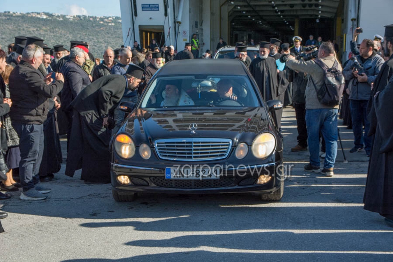 Έφτασε στα Χανιά το σκήνωμα του Μητροπολίτη Δαμασκηνού – Με πομπή η μεταφορά του στη Μητρόπολη – Δείτε φωτογραφίες από την υποδοχή στο Λιμάνι της Σούδας
