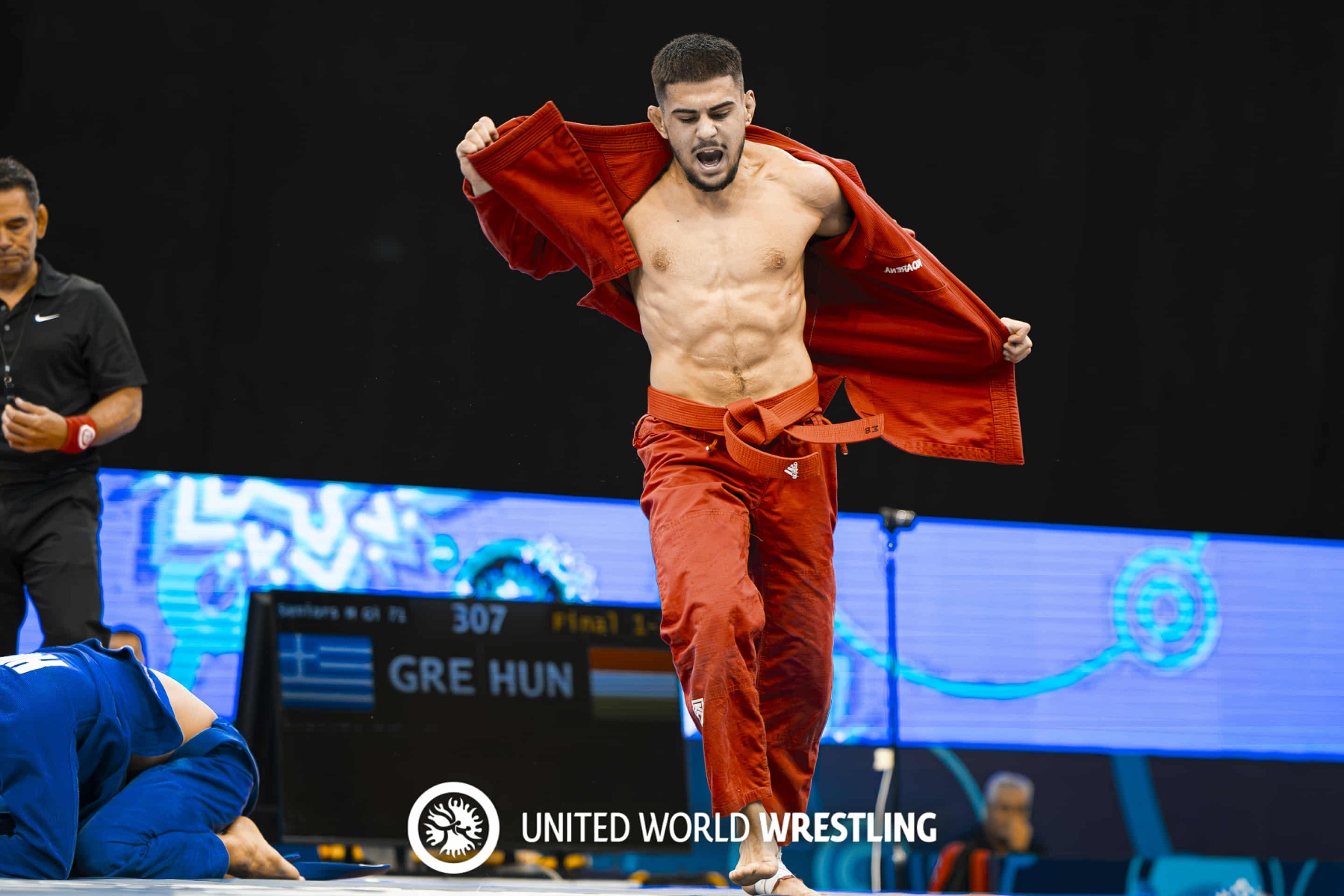Στον μεγάλο τελικό ο Ελληνας πρωταθλητής νίκησε με 2-1 τον Ούγγρο Λάκατος και σήκωσε την ελληνική σημαία ψηλά, χαρίζοντας το πρώτο χρυσό της Ελλάδας στο Grappling.