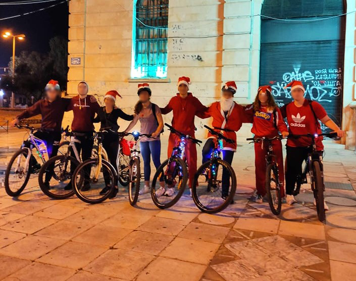Οκτώ νέοι και νέες λοιπόν, έκαναν βόλτα το Σάββατο στα Χανιά με τα ποδήλατά τους, ντυμένοι Άγιοι Βασίληδες – ή έστω φορώντας σκούφο – και έχοντας πάρει άδεια από τις αρχές. Το… Santa Bike Run ξεκίνησε στις 17:30 και οι Αγιοι Βασίληδες πέρασαν από το Ενετικό Λιμάνι, τη Νέα Χώρα, έφτασαν στον Κλαδισό, γύρισαν πίσω από την Κισσάμου με τον ποδηλατόδρομο, προχώρησαν μέχρι τα Δικαστήρια και την Ηρώων Πολυτεχνείου, για να επιστρέψουν από τη Βενιζέλου στην πλατεία Δημοτικής Αγοράς.