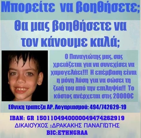 Όπως αναφέρουν οι γονείς του, «αρχικά μαθαίνοντας από τους γιατρούς που το παρακολουθούν από την ημέρα που γεννήθηκε, ότι πια τα φάρμακα δεν δρουν, πάθαμε σοκ, γνωρίζοντας ότι ανά πάσα στιγμή το παιδί μας μπορεί να καταλήξει.