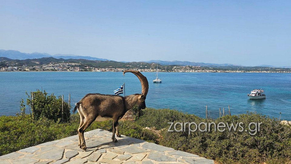 Στην αποβάθρα μας περιμένουν οι δύο δασοφύλακες και η υπεύθυνη δασοπόνος, οι «οικοδεσπότες» δηλαδή του νησιού που είναι κλειστό για τους επισκέπτες καθώς αποτελεί εκτροφείο θηραμάτων και φυσικό καταφύγιο για 80 περίπου κρητικούς αιγάγρους.