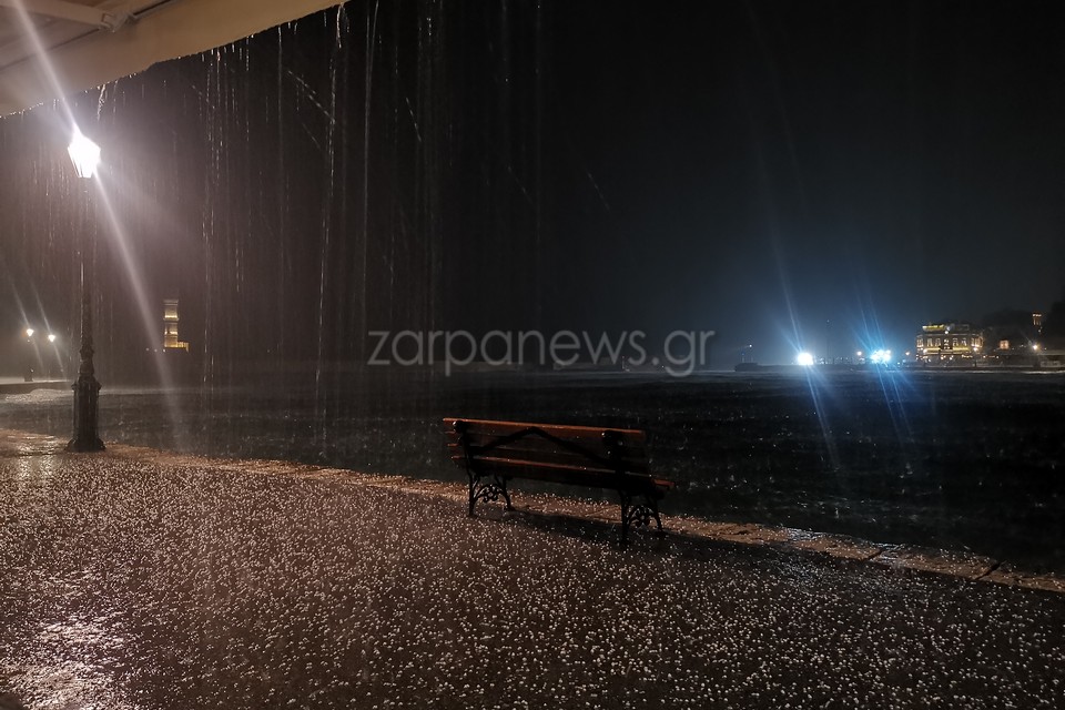 Χαρακτηριστικό είναι το βίντεο από το Ενετικό λιμάνι των Χανίων την στιγμή της χαλαζόπτωσης και των κεραυνών, που έκαναν τη νύχτα- μέρα.
