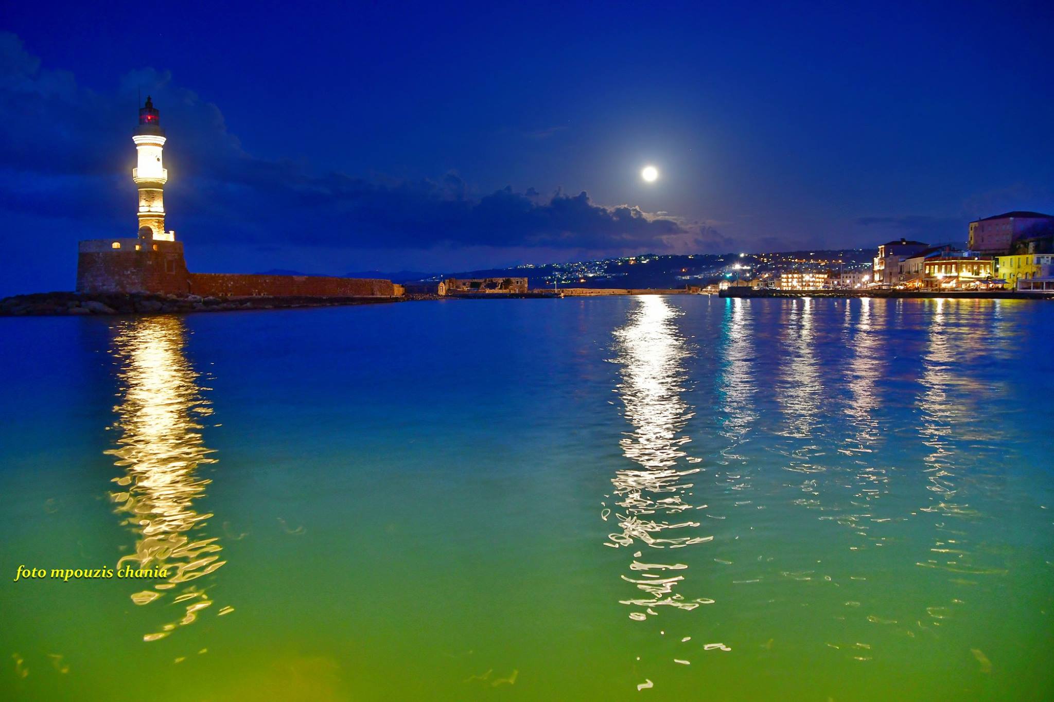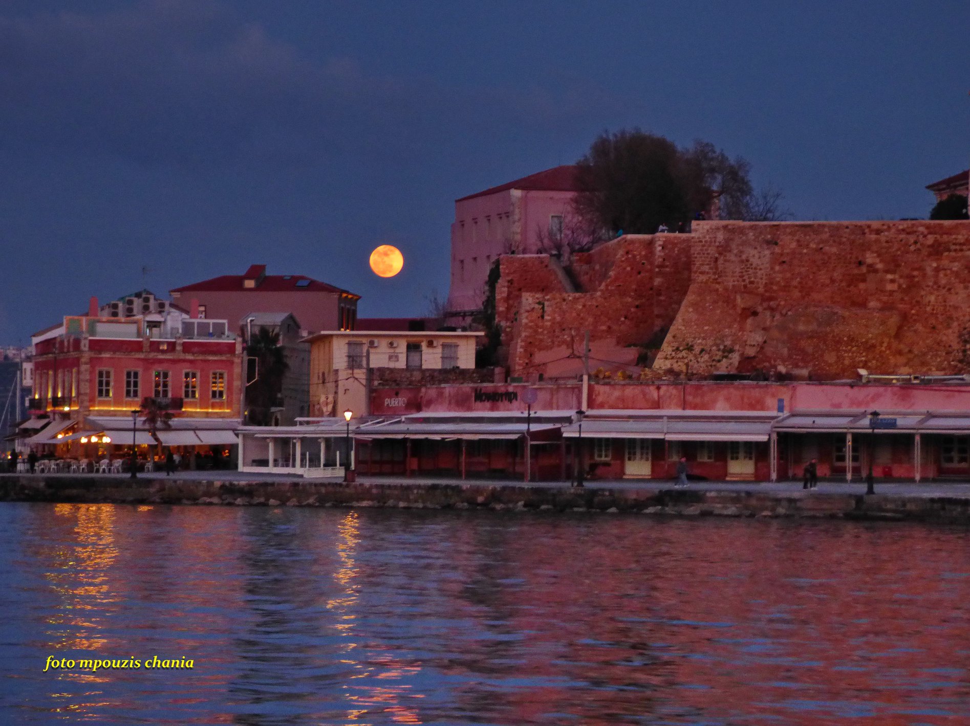 Εντυπωσιακές εικόνες από την υπερ-πανσέληνο να “λούζει” το λιμάνι των Χανίων