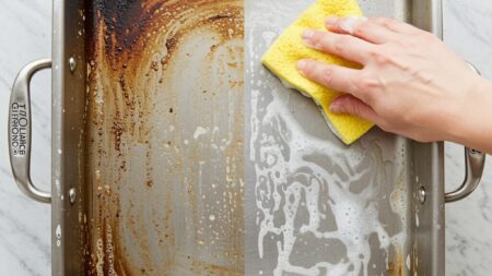Καμένα λίπη και κολλημένα υπολείμματα δεν φεύγουν πάντα με απλό πλύσιμο. Δείτε τι λειτουργεί αποτελεσματικά για επίμονους λεκέδες σε ταψιά και κατσαρόλες, χωρίς να καταστρέψουμε τα σκεύη.