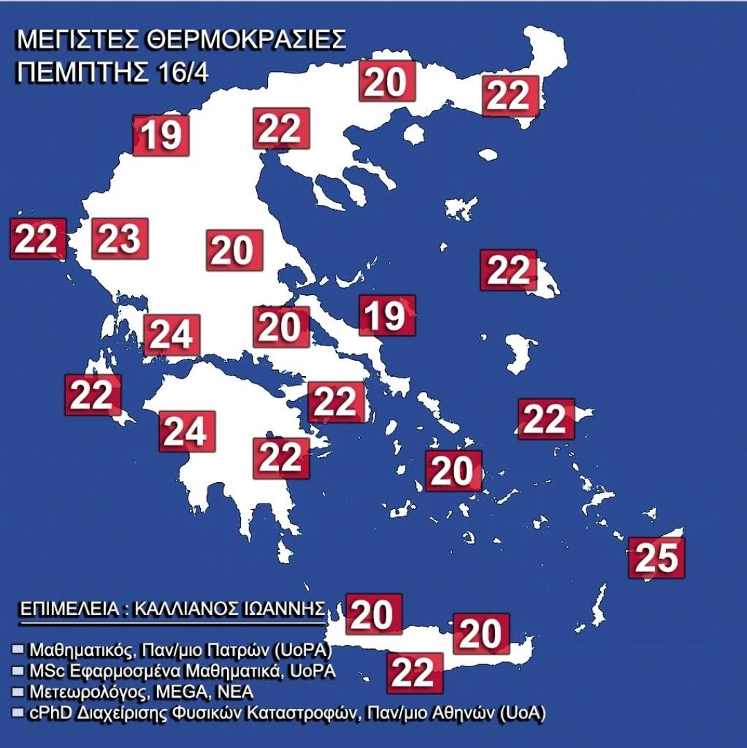 Ακολουθούν οι μέγιστες θερμοκρασίες ανά περιοχή έως και την Παρασκευή 17 Απριλίου