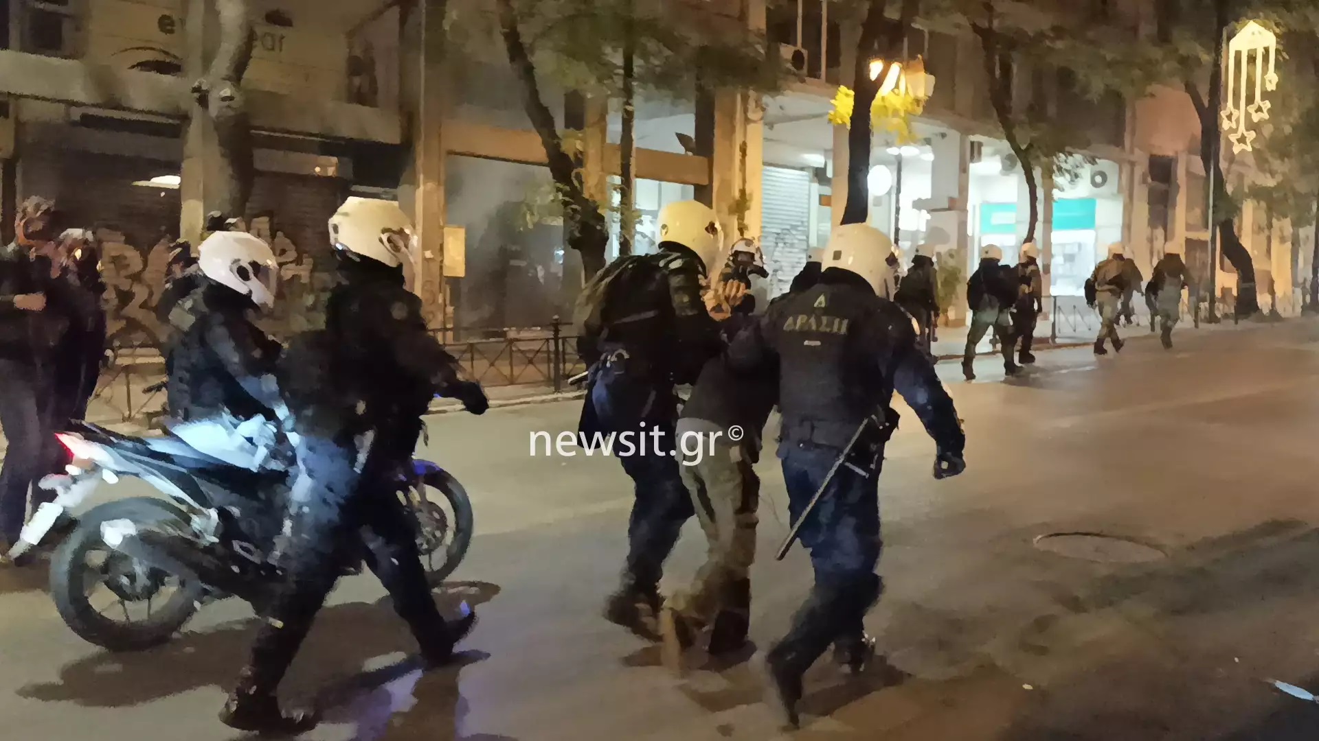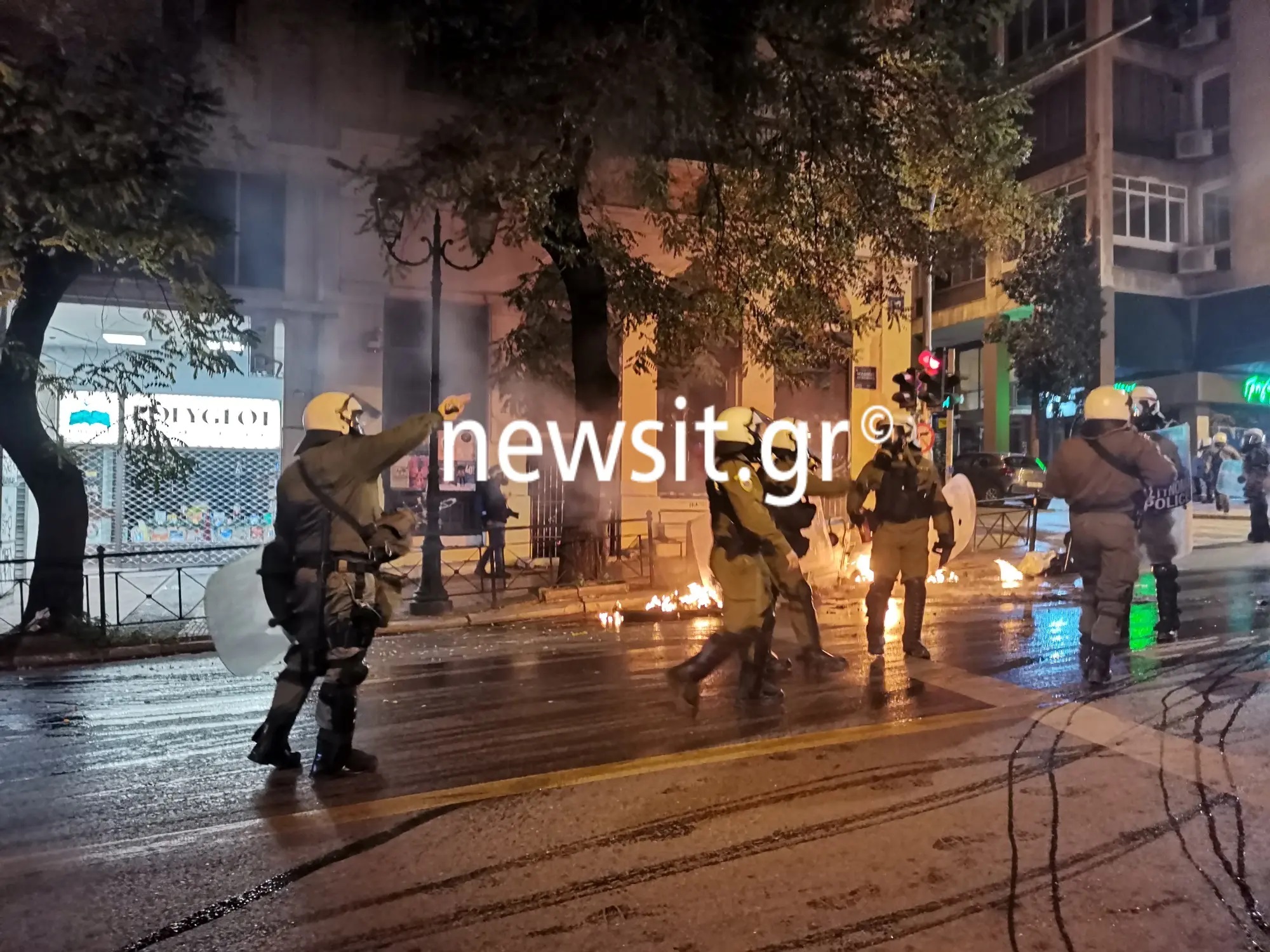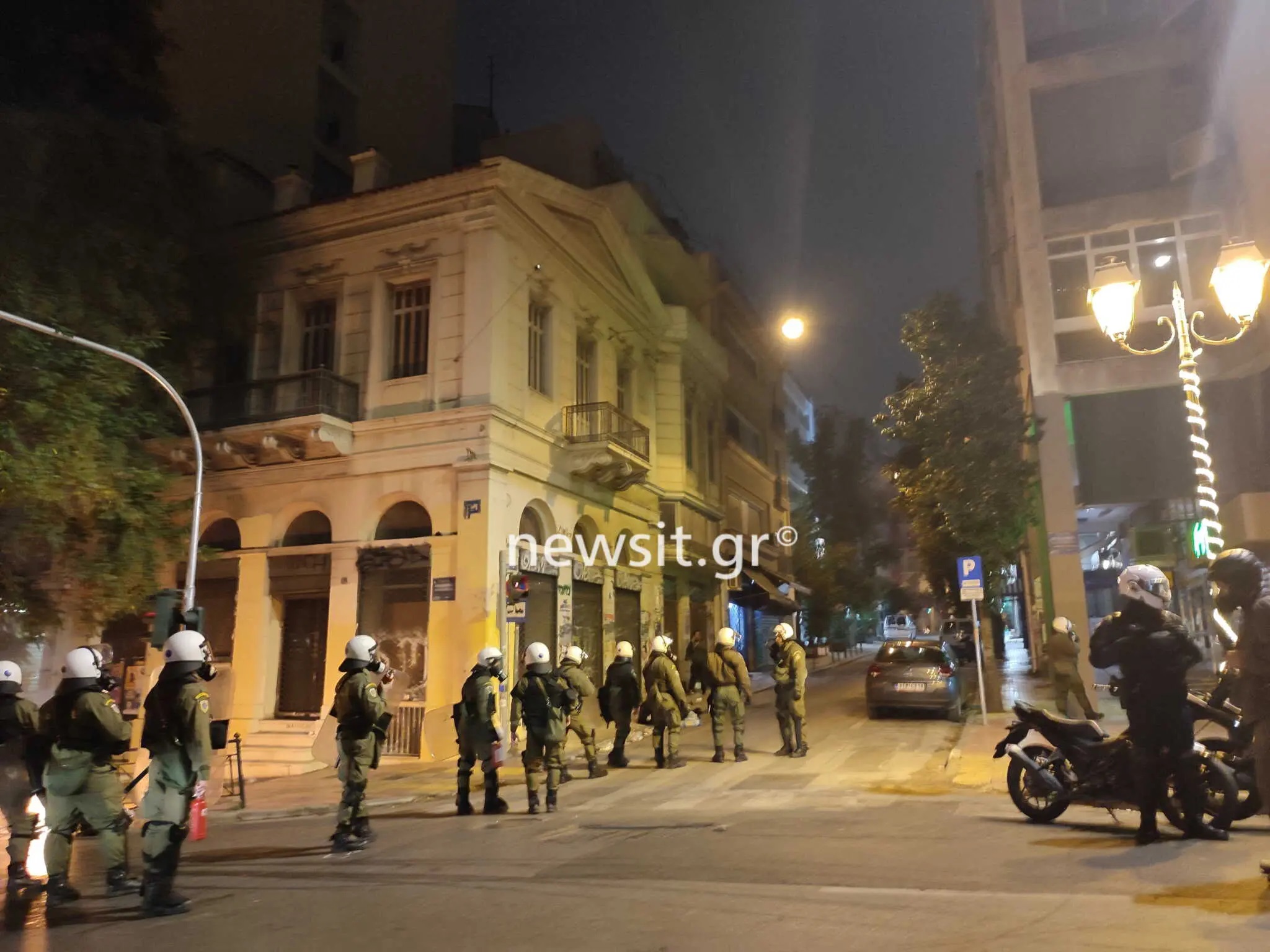 Στο μεταξύ στο τέλος της Πανεπιστημίου προς την Ομόνοια είχαν συγκεντρωθεί πολλοί διαδηλωτές, αστυνομικοί με μηχανάκια τους διέλυσαν και αυτοί να απαντούν με βροχή από μπουκάλια και αντικείμενα.