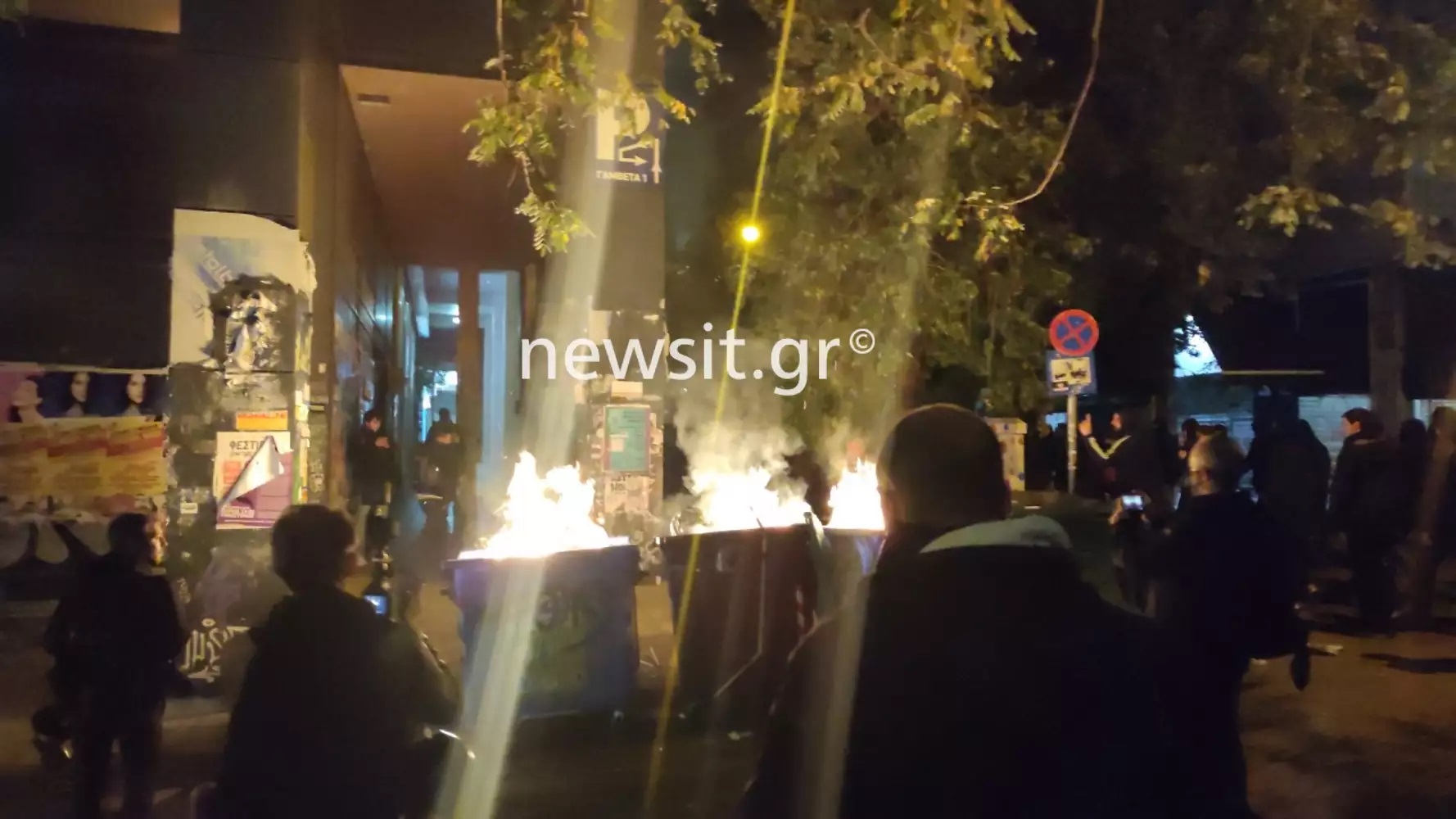 Τα πνεύματα οξύνθηκαν στην Εμμανουήλ Μπενάκη καθώς κάποιοι από τους διαδηλωτές άρχισαν να καίνε κάδους.