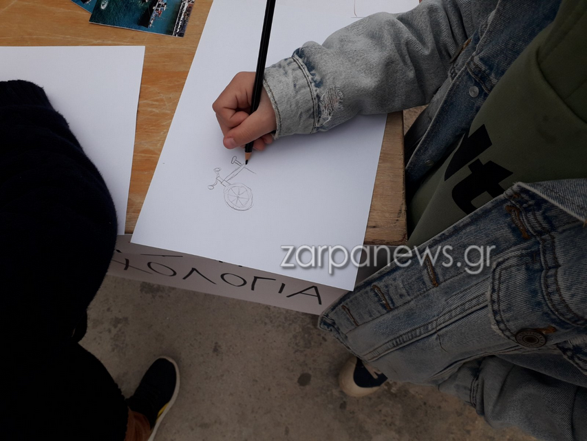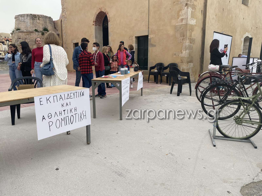 Η δράση ξεκίνησε με τους μαθητές του 1ου Πειραματικού Γυμνασίου Χανίων, οι οποίοι παρουσίασαν τις εργασίες τους με θέμα: Η ζωή μας με το ποδήλατο”, την οποία επιμελήθηκε η εκπαιδευτικός Αργυρώ Μουντάκη.