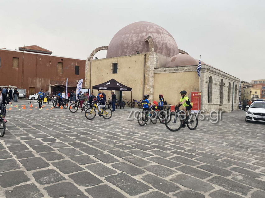 Οι παράλληλες εκδηλώσεις ξεκίνησαν από τα Χανιά, με την 1η Ακαδημία Ποδηλάτου, το απόγευμα του Σαββάτου. Το Ενετικό Λιμάνι, πίσω από το Γυαλί Τζαμί, γέμισε μικρούς και μεγάλους ποδηλάτες.