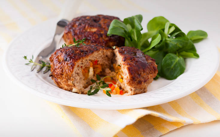 Ανοίγετε κάθε μπιφτέκι, στρώνετε μέσα μια ροδέλα ντομάτας και μια φέτα τυρί και το κλείνετε. Βάζετε τα μπιφτέκια στο γκριλ με ελαφρώς λαδωμένη σχάρα και τα αφήνετε να ψηθούν για 5-6 λεπτά από κάθε πλευρά.