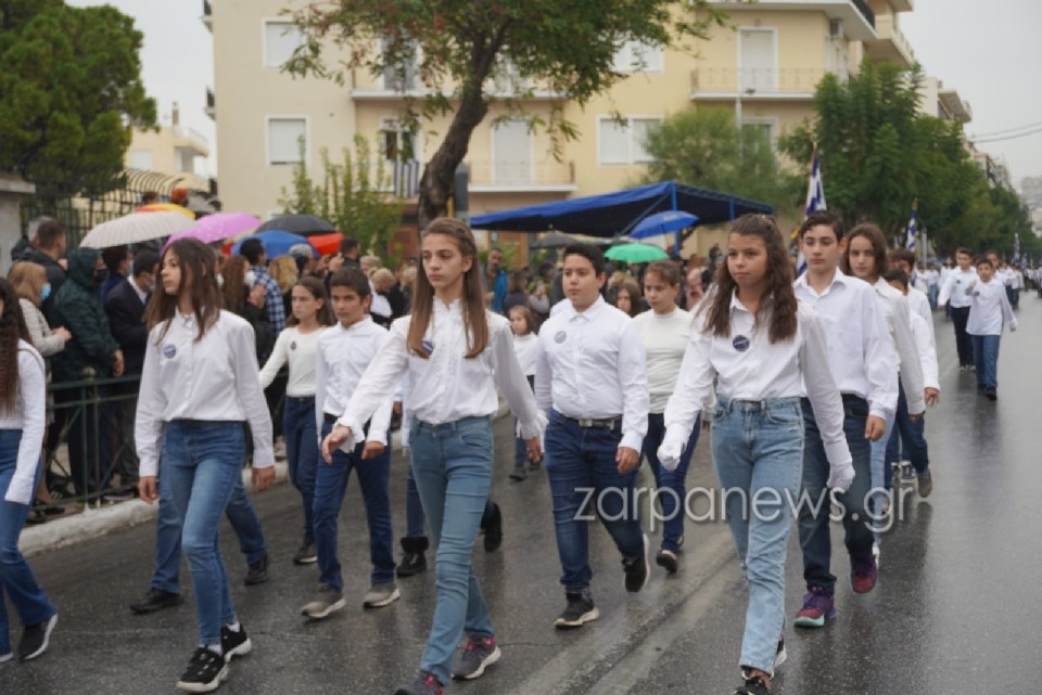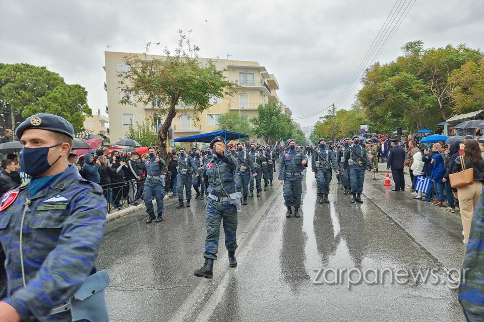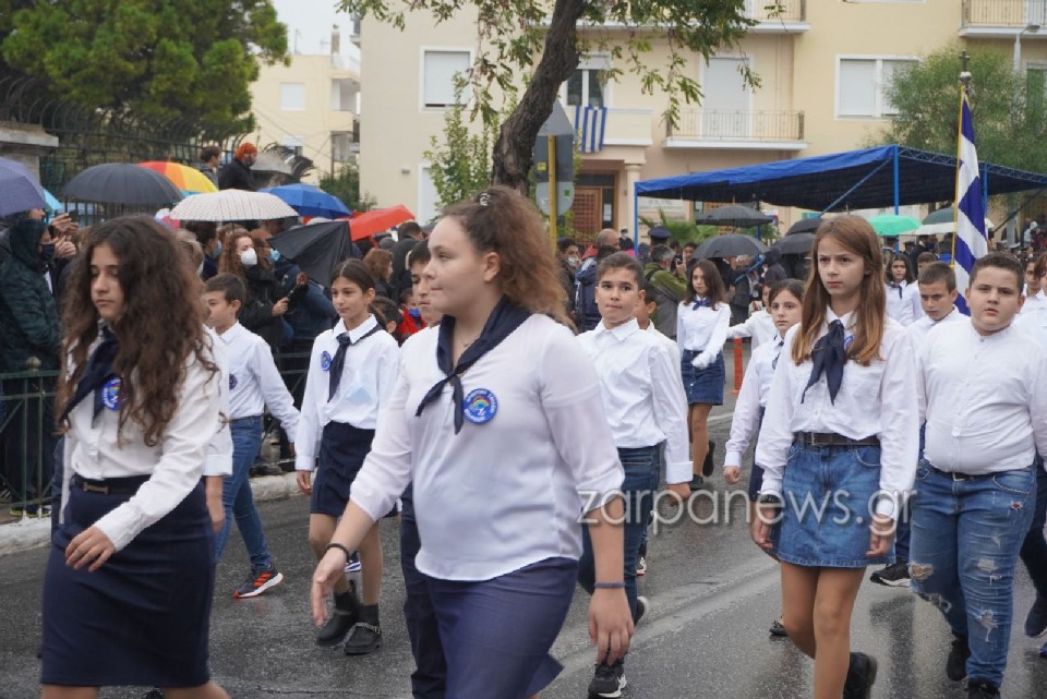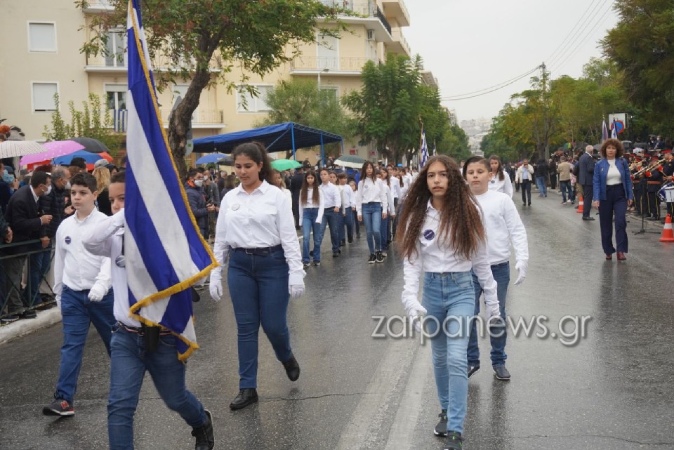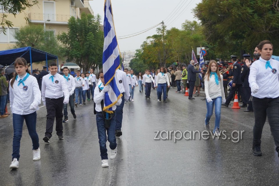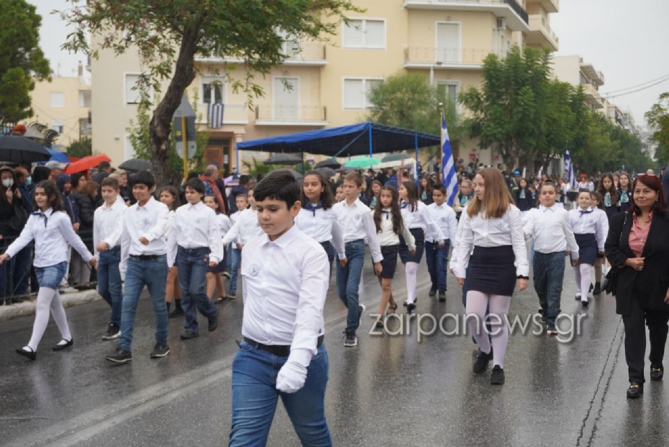 Υπό τους ήχους της μπάντας του Δήμου Χανίων και στη συνέχεια και της στρατιωτικής μπάντας της 5ης Μεραρχίας Κρητών, μαθητές από όλα τα σχολεία των Χανίων παρήλασαν, τιμώντας την επέτειο του “ΟΧΙ”.