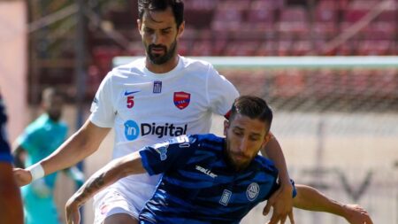 45+2’ Φάση διαρκείας για τα Χανιά που πιέζουν για την ισοφάριση. Η μπάλα φτάνει στον Προβυδάκη, που σουτάρει από το ύψος της περιοχής άουτ.