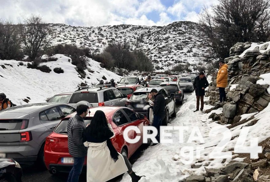 Όπως αναφέρει το creta24.gr, τα αυτοκίνητα που ανέβαιναν το ένα μετά το άλλο «κόλλησαν» μετά τη Ζώμινθο, όχι λόγω χιονιού αλλά λόγω κίνησης.