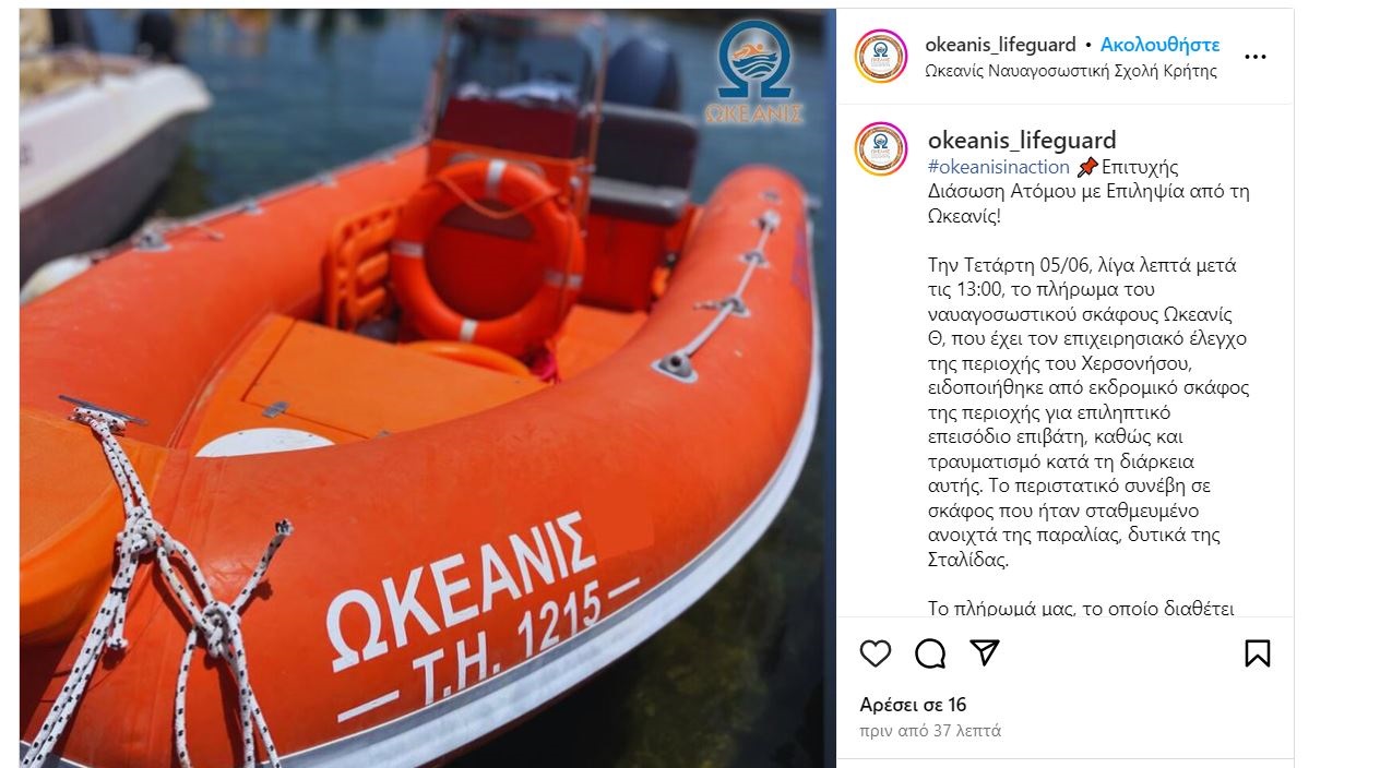 Κρήτη | Έπαθε επιληπτική κρίση ενώ ήταν στο σκάφος – Έσπευσαν οι ναυαγοσώστες