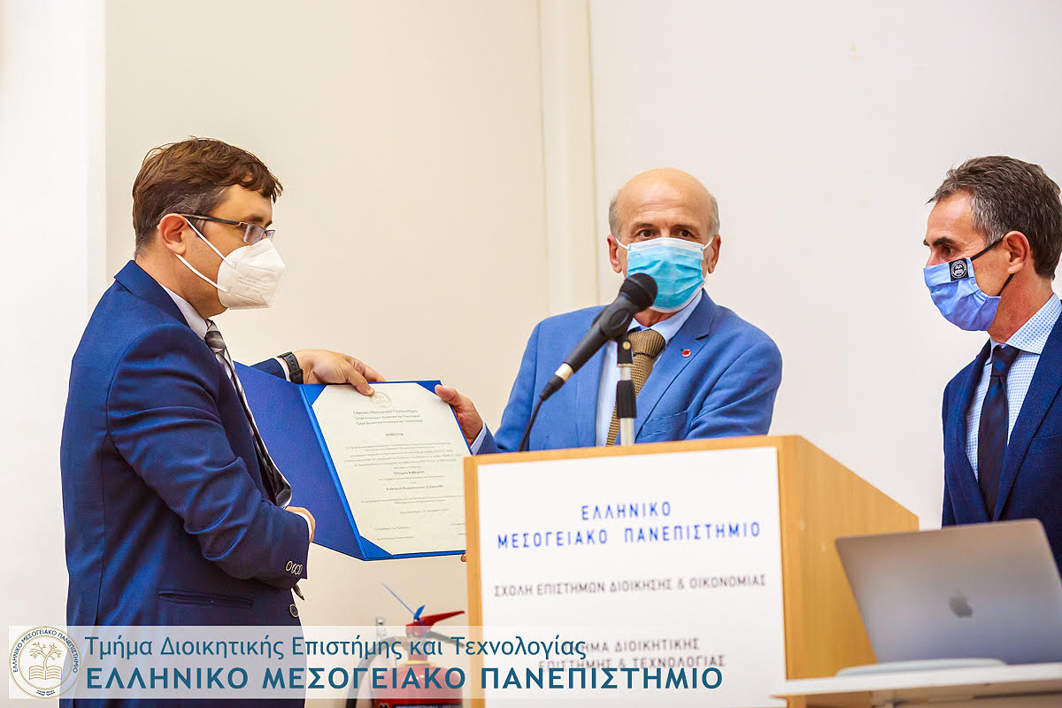 • Παρουσίαση του έργου του Τιμώμενου από τον Επίκουρο Καθηγητή του Τμήματος Διοικητικής Επιστήμης και Τεχνολογίας του Ελληνικού Μεσογειακού Πανεπιστημίου, κ. Χρήστο Λεμονάκη