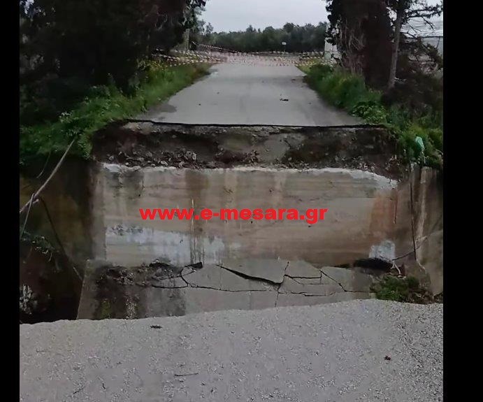 Αποκαλυπτική είναι η φωτογραφία από τη γέφυρα που κατέρρευσε κατά τη διάρκεια της νύχτας στην περιοχή του αναδασμού Τυμπακίου, στη Μεσαρά.