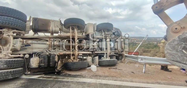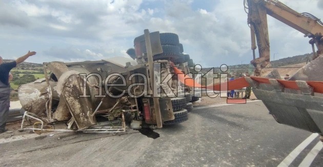Σοβαρό τροχαίο στην Κρήτη: Μπετονιέρα ανετράπη – Εγκλωβίστηκε ο οδηγός | Photos