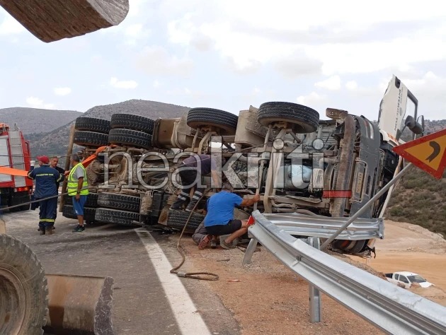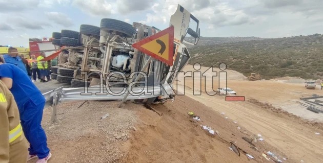 Σοβαρό ατύχημα σημειώθηκε το πρωί του Σαββάτου λίγο πριν τις 09:00 στον δρόμο που συνδέει τη Χερσόνησο με το Καστέλι, όταν μπετονιέρα εξετράπη της πορείας της και ανετράπη κάτω από αδιευκρίνιστες συνθήκες. Το βαρύ όχημα κατέληξε πάνω σε προστατευτικές μπάρες, προκαλώντας μεγάλη κινητοποίηση των αρχών.