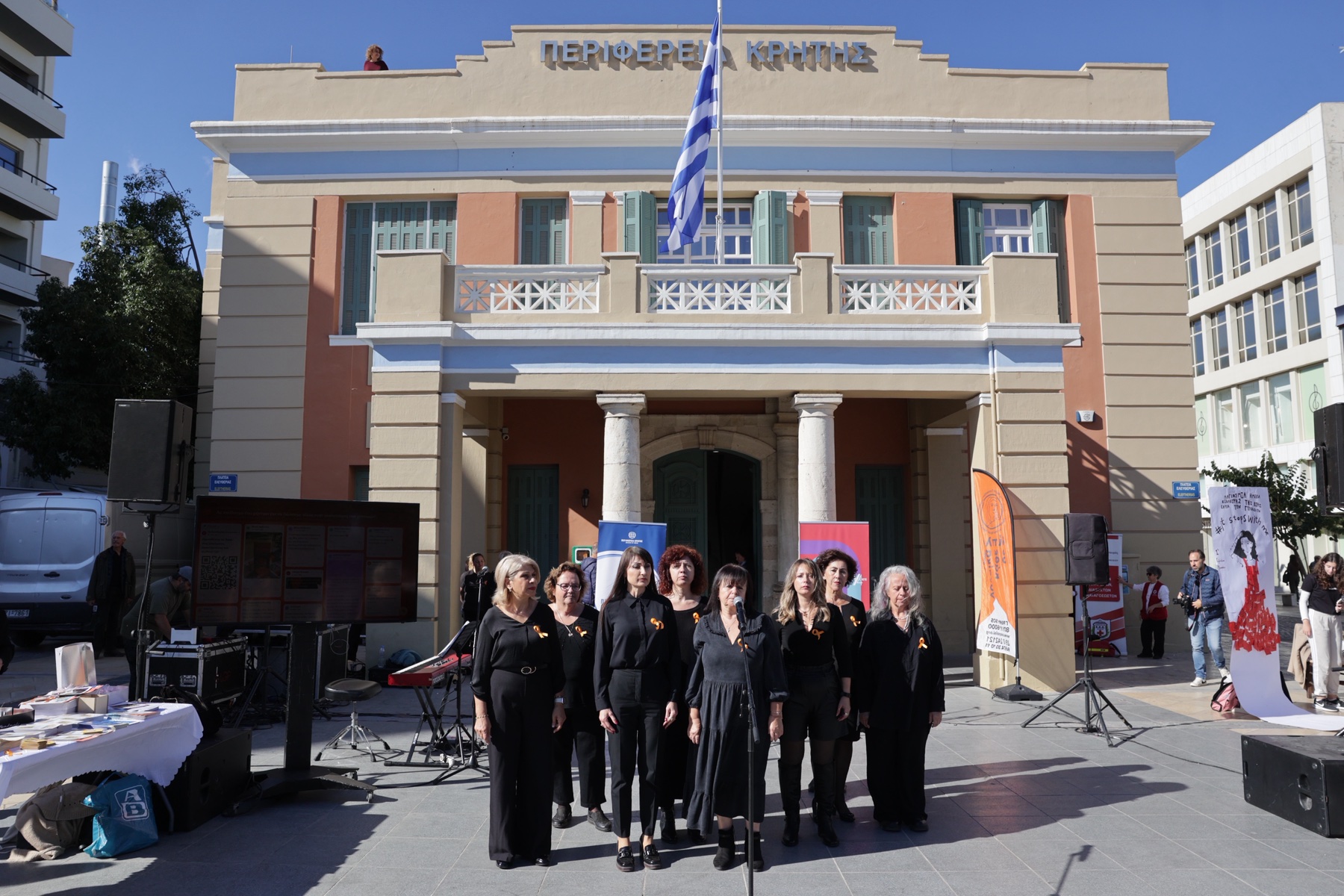 Με μεγάλη συμμετοχή πολιτών και φορέων ολοκληρώθηκε η ανοιχτή εκδήλωση ενημέρωσης και ευαισθητοποίησης της Περιφέρειας Κρήτης, Αυτοτελούς Γραφείου Ισότητας, για την Παγκόσμια Ημέρα Εξάλειψης της Βίας κατά των Γυναικών, που πραγματοποιήθηκε την Τρίτη, 25 Νοεμβρίου 2025, έξω από το κτίριο της Περιφέρειας Κρήτης στην Πλατεία Ελευθερίας.