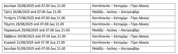 Σημείωση: Τις μέρες που τα αποθέματα νερού επαρκούν θα διατίθεται νερό σε όλες τις περιοχές.