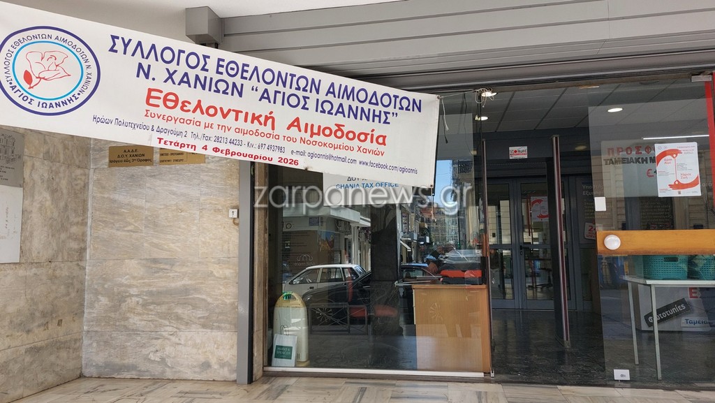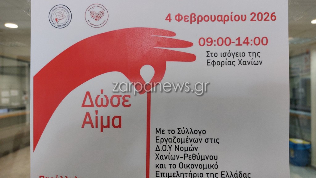 Ο Σύλλογος Εθελοντών Αιμοδοτών Χανίων συνεχίζει την δράση του με προγραμματισμένες εθελοντικές αιμοδοσίες το επόμενο διάστημα. Στις 25 Φεβρουαρίου θα πραγματοποιήσει εθελοντική αιμοδοσία στο Λύκειο των Βρυσσών.