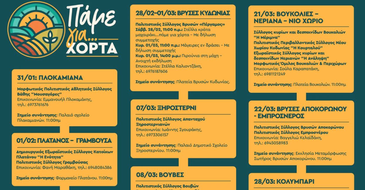 Μεγάλη επιτυχία γνωρίζει η δράση «Πάμε για… χόρτα;», της Περιφέρειας Κρήτης, η οποία συνεχίζεται για 3η χρονιά.
