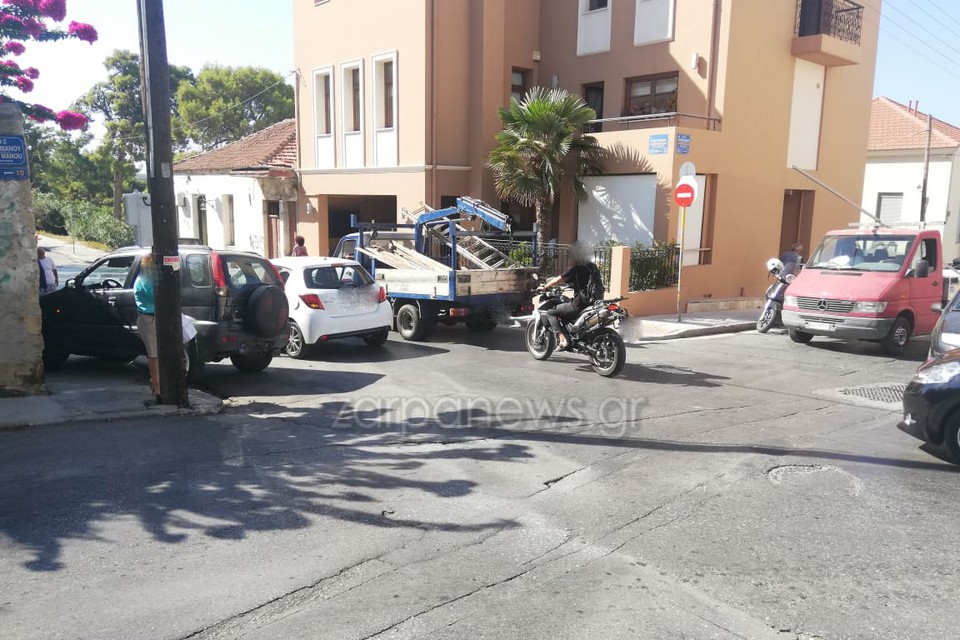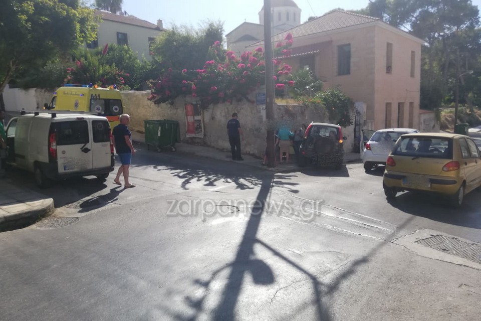 Συγκεκριμένα το τροχαίο σημειώθηκε λίγα λεπτά πριν τις 4 το απόγευμα, στη συμβολή των οδών Κ.Μάνου με την Γιαμπουδάκη, πάνω από τα Δικαστήρια Χανίων, όπου δύο οχήματα προσέκρουσαν πλαγιομετωπικά.